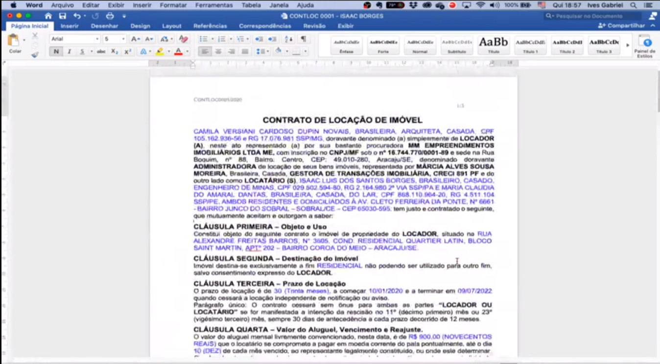 Abra seu contrato no Word, seleciona e copie os dados do contrato