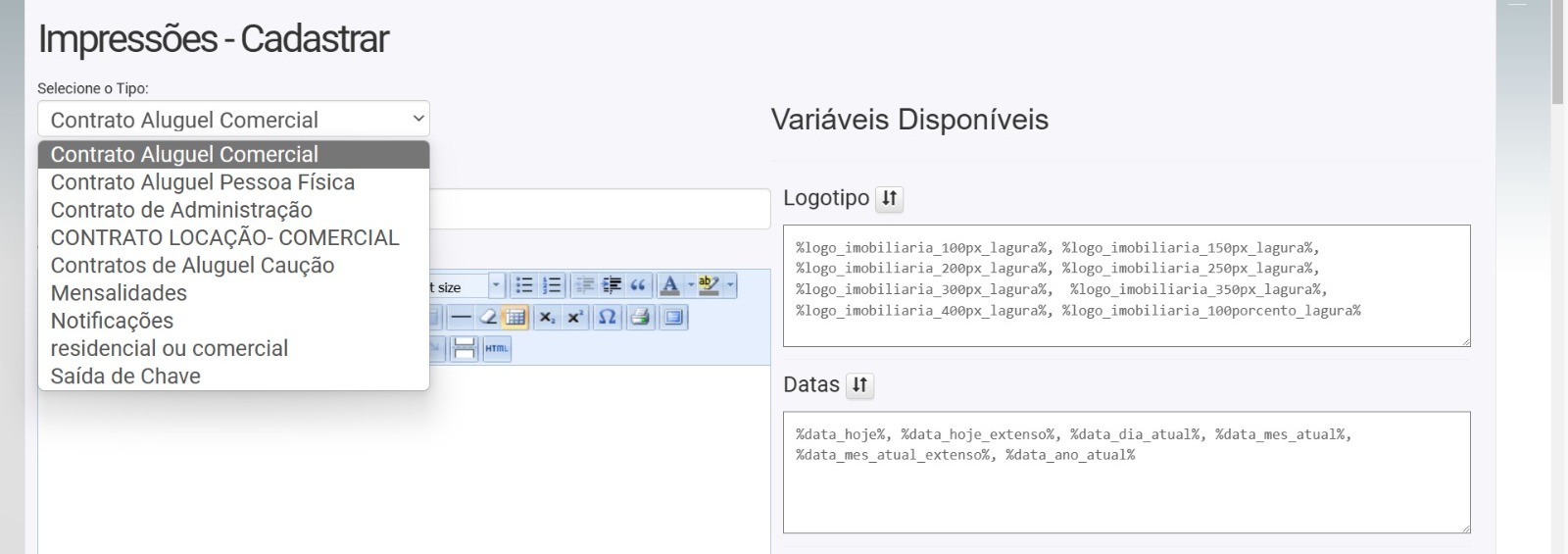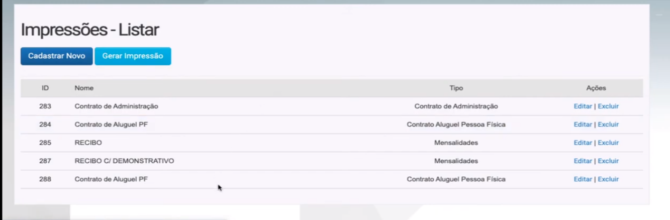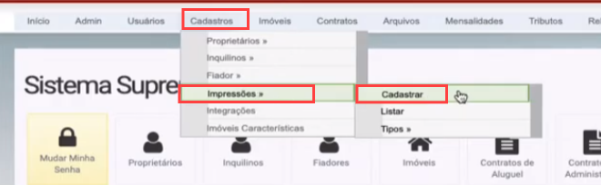 4. Em seguida clique em impressões > Cadastrar