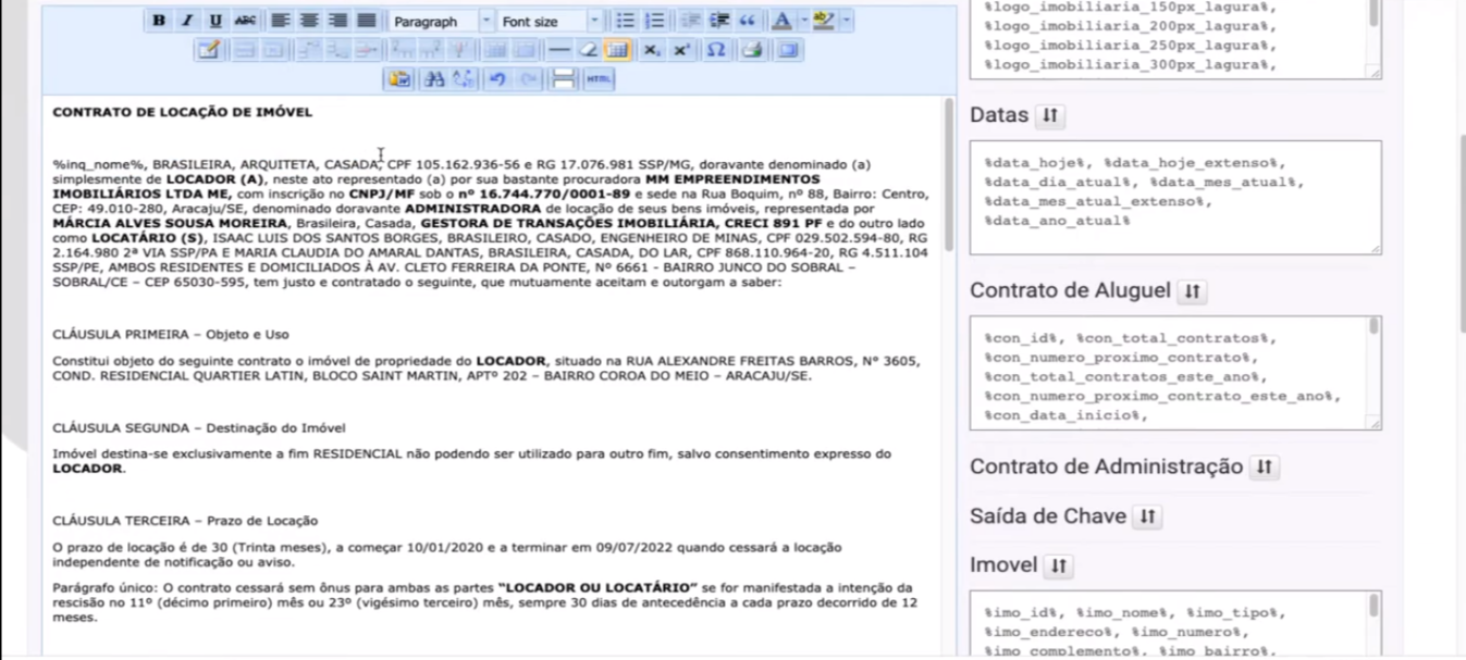 7. Em seguida, troque alguns campos por variáveis (nome, nacionalidade, estado civil valor…)