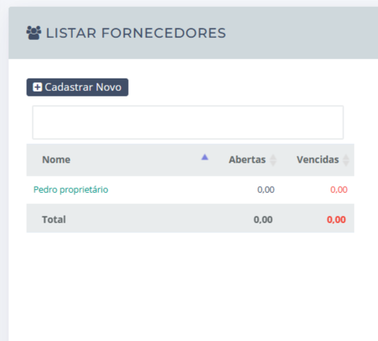 4. O sistema vai exibir todos os fornecedores cadastrados