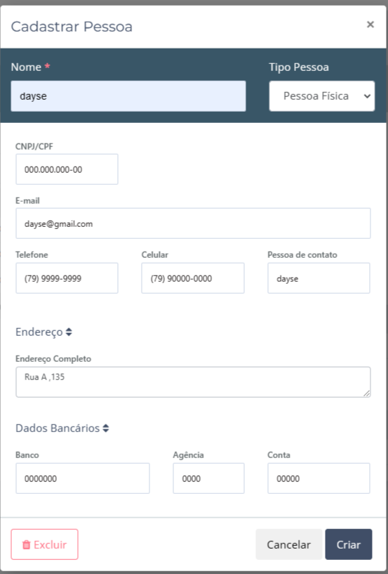 6. Vai abrir um popup para cadastro do novo fornecedor