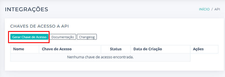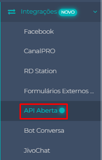 2. No menu lateral esquerdo, clique em “Integrações”.