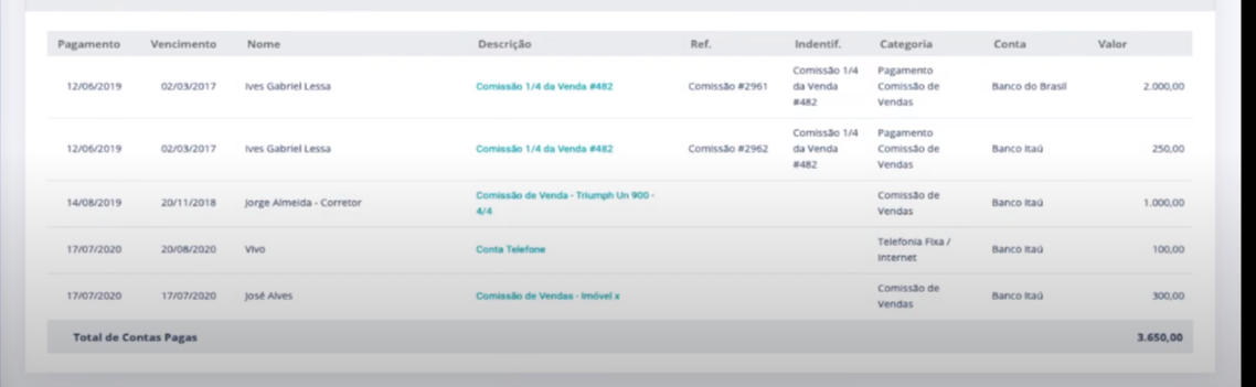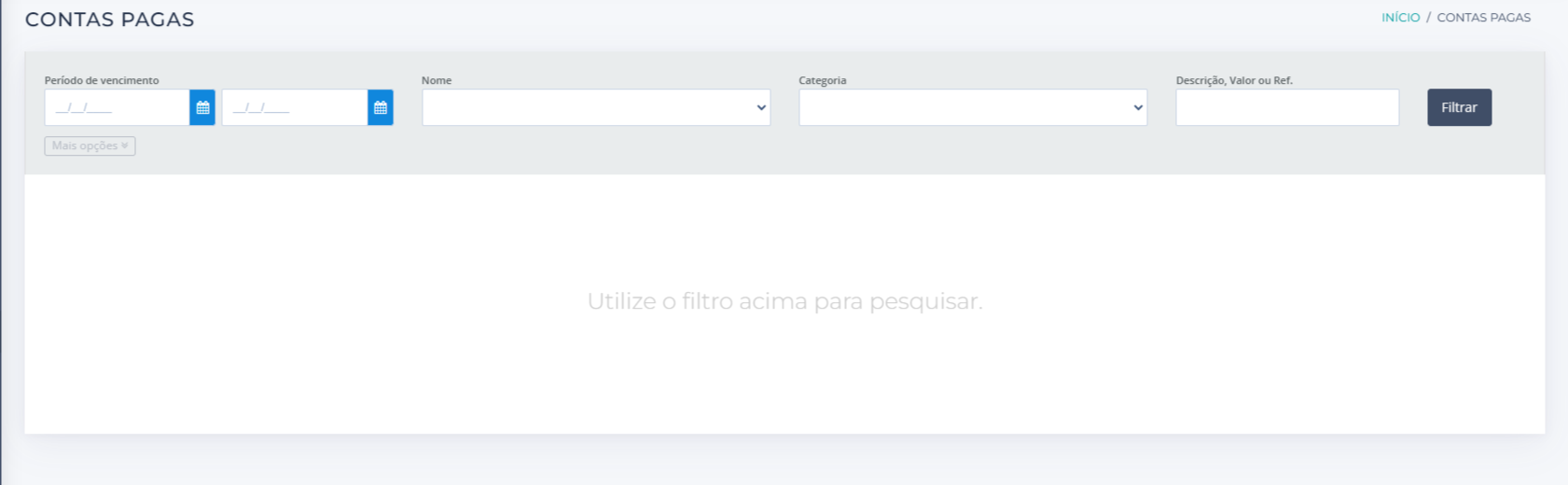 5. Filtrando, o sistema vai exibir todas as contas pagas, totalizando os valores