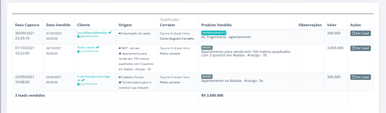 4. O sistema vai exibir uma tela listando todos os imóveis e empreendimentos vendidos