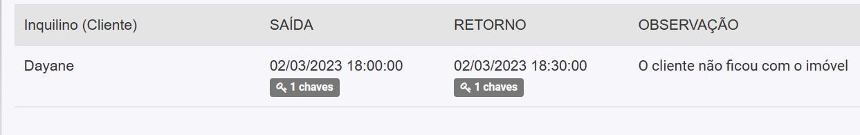 13. O sistema vai exibir o registro de saída e retorno da chave