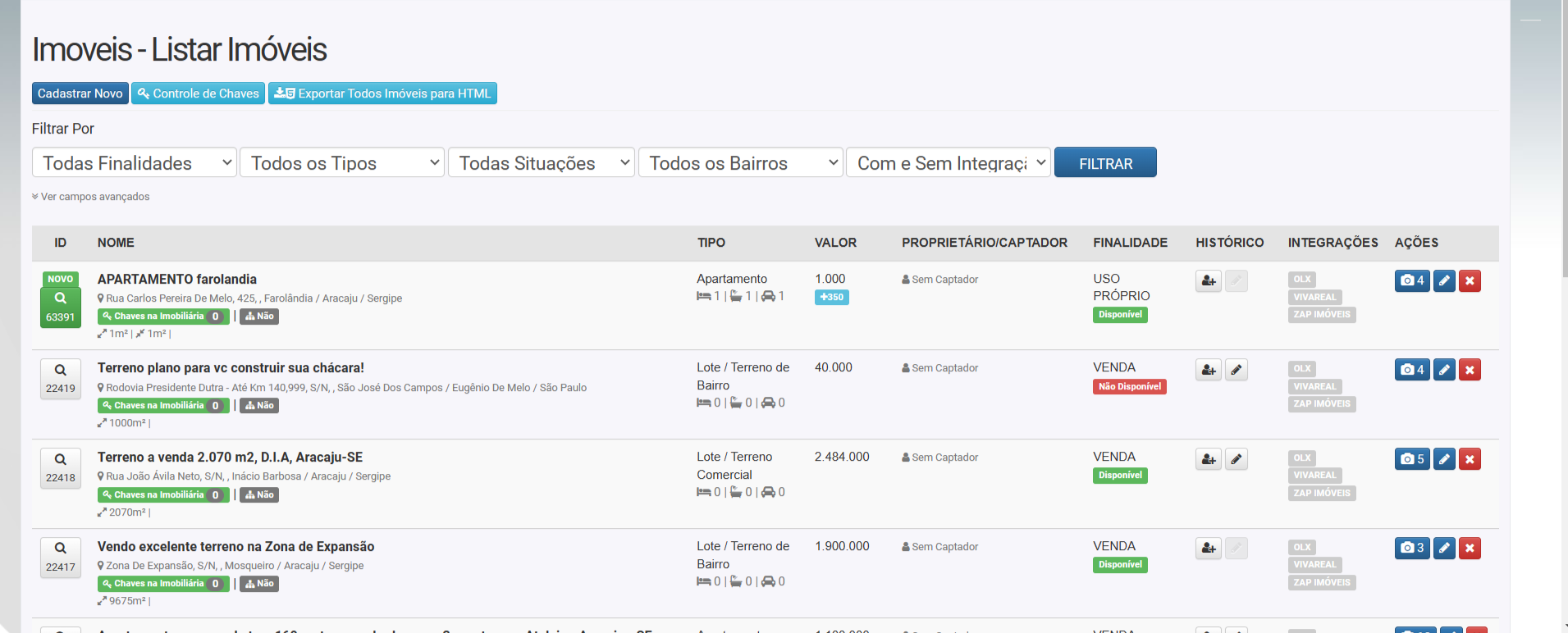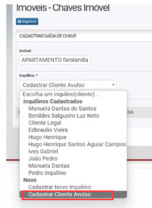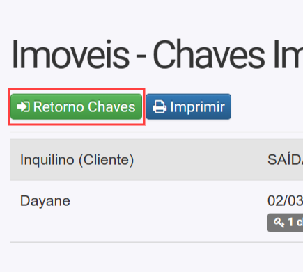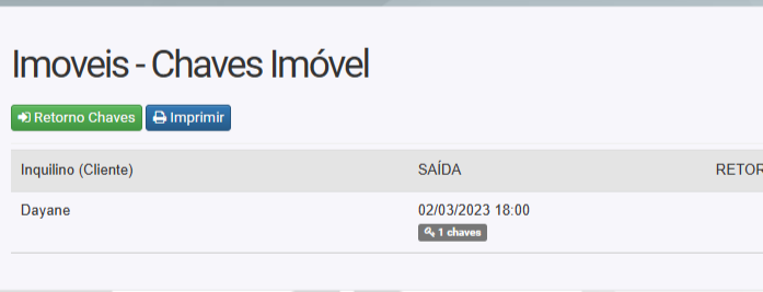 9. Ao voltar na listagem de imóveis, vai exibir que as chaves esta com o cliente