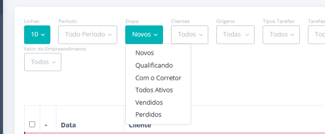 5. Podendo filtrar pela etapa do seu funil