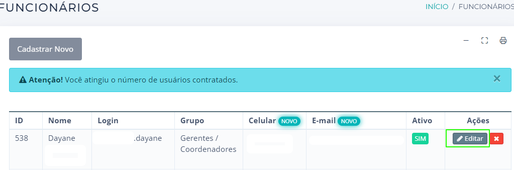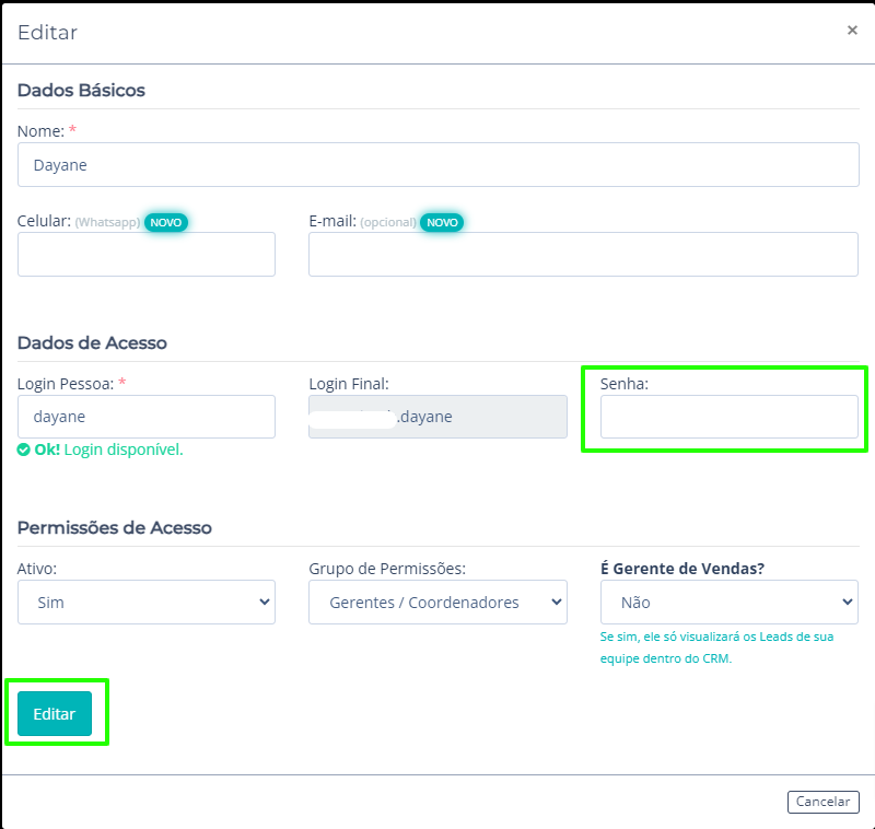 5. Preencha o campo “Senha” e clique no Botão Editar