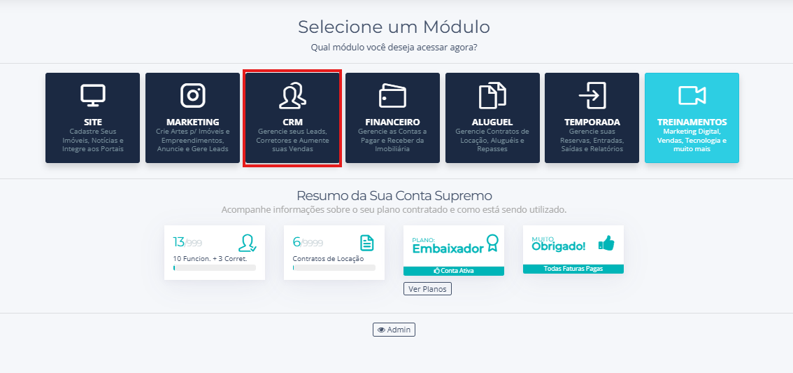 - Acesse o Módulo CRM.
