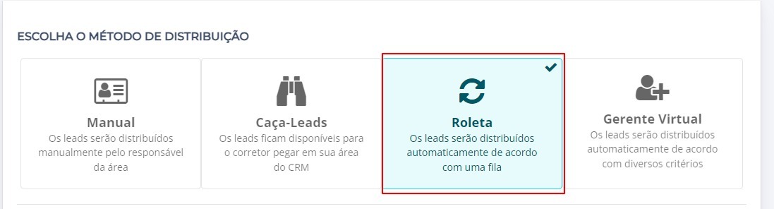 Escolha o Método de Distribuição Roleta