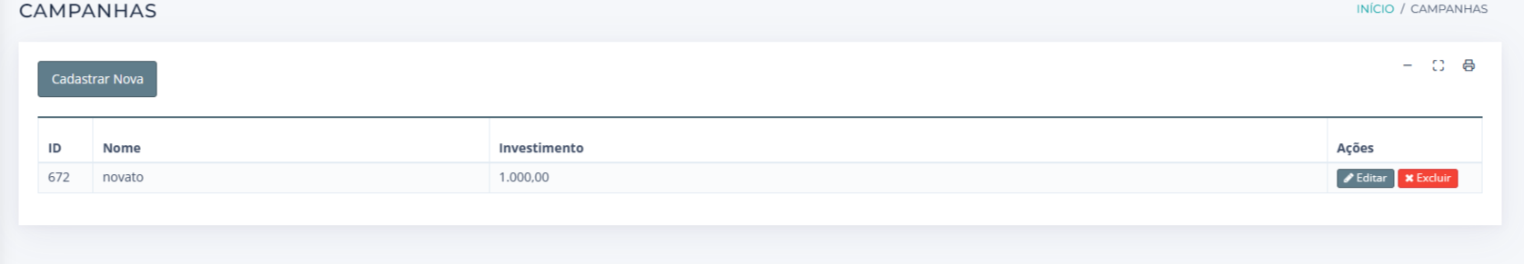 9. O sistema vai exibir na listagem de campanhas