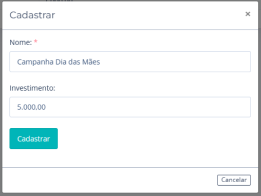 7. Preencha o nome da Campanha e investimento