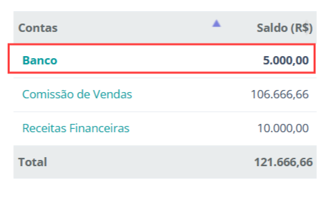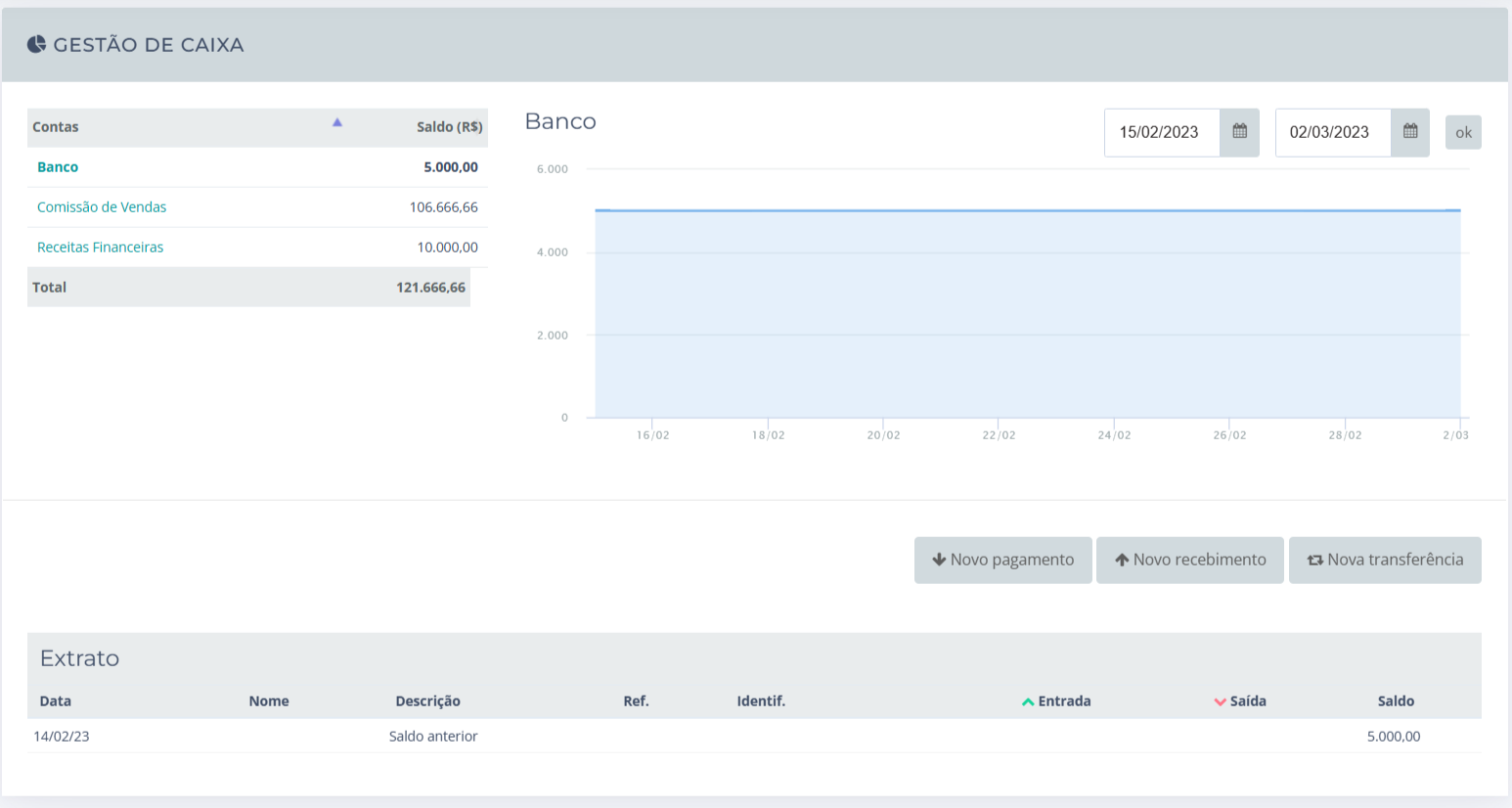 3. O sistema vai exibir uma tela, com contas e fluxo de caixa