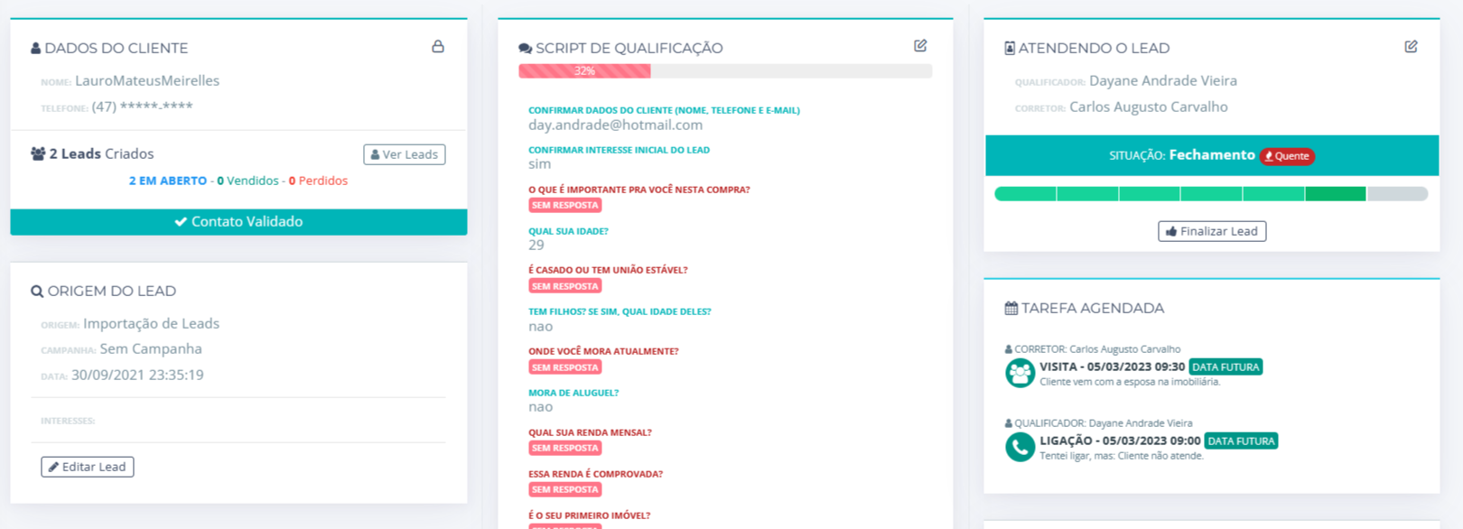 4. O sistema vai exibir o lead