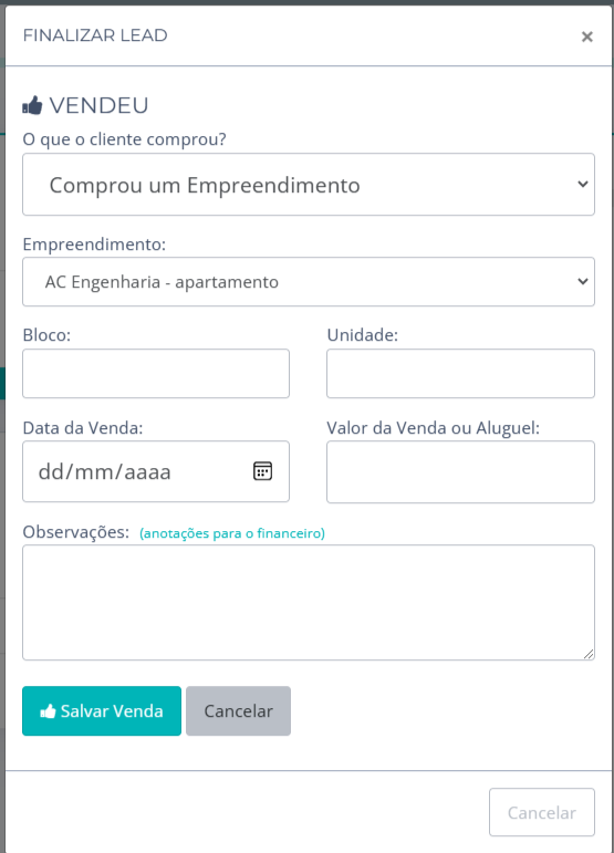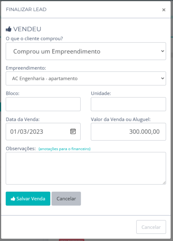 7. Em seguida, clique no Botão Finalizar Lead