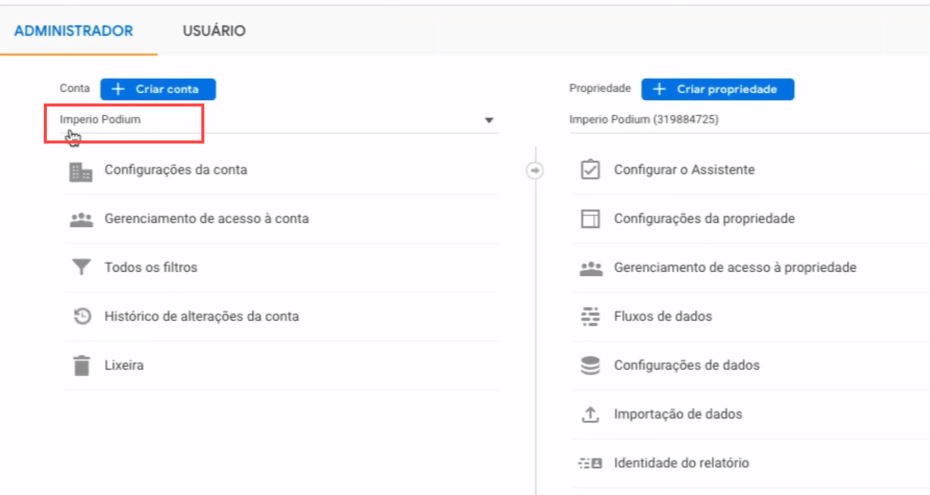 Acessar o https://analytics.google.com com seu e-mail