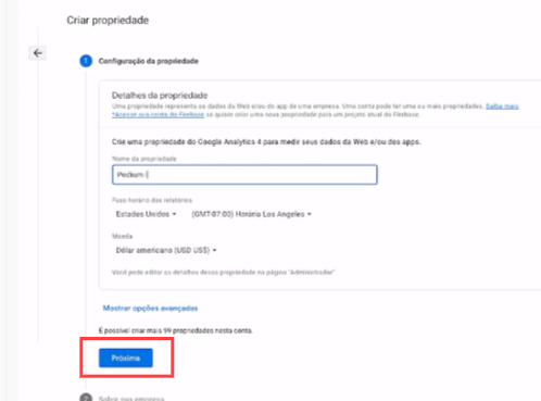 6. Configurar a conta e clica no Botão Próxima