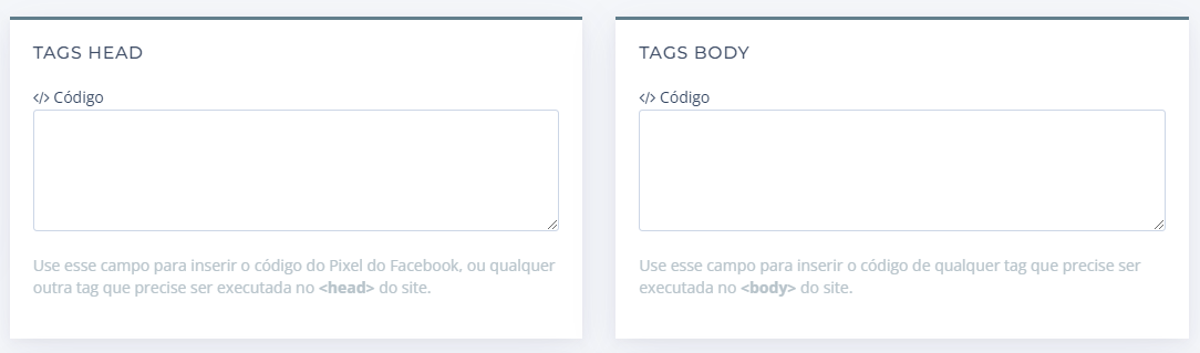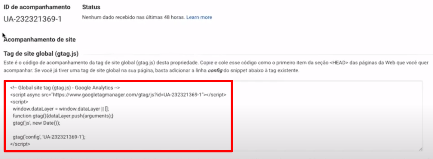 22.Insira o código do Google Analytics copiado no campo TAGS HEAD