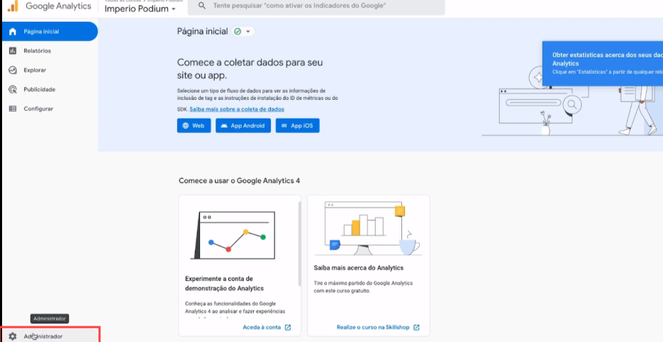 10. Na pagina Inicial do Google Analytics