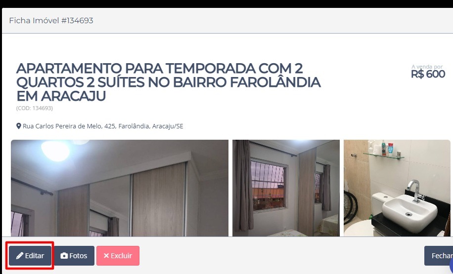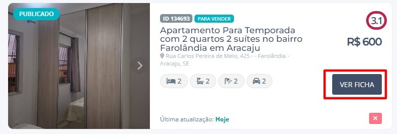 3. O sistema vai exibir a listagem de todos os imóveis e depois clique no botão Ver Ficha