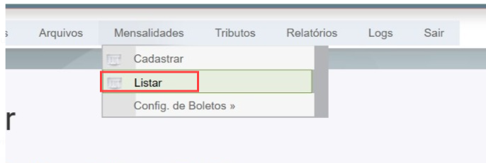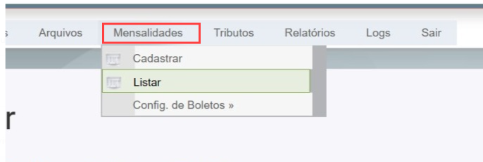 Clique no Menu Mensalidade