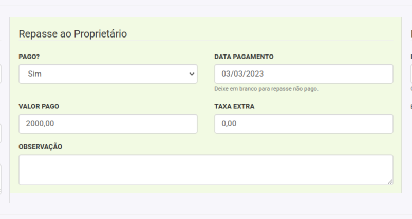 10. Em seguida, selecione o valor e data do repasse o proprietário