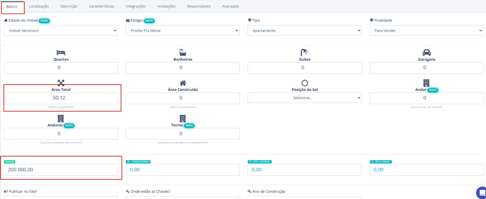 1. Aba “Básico” – Erro ao salvar modificações de imóvel:
