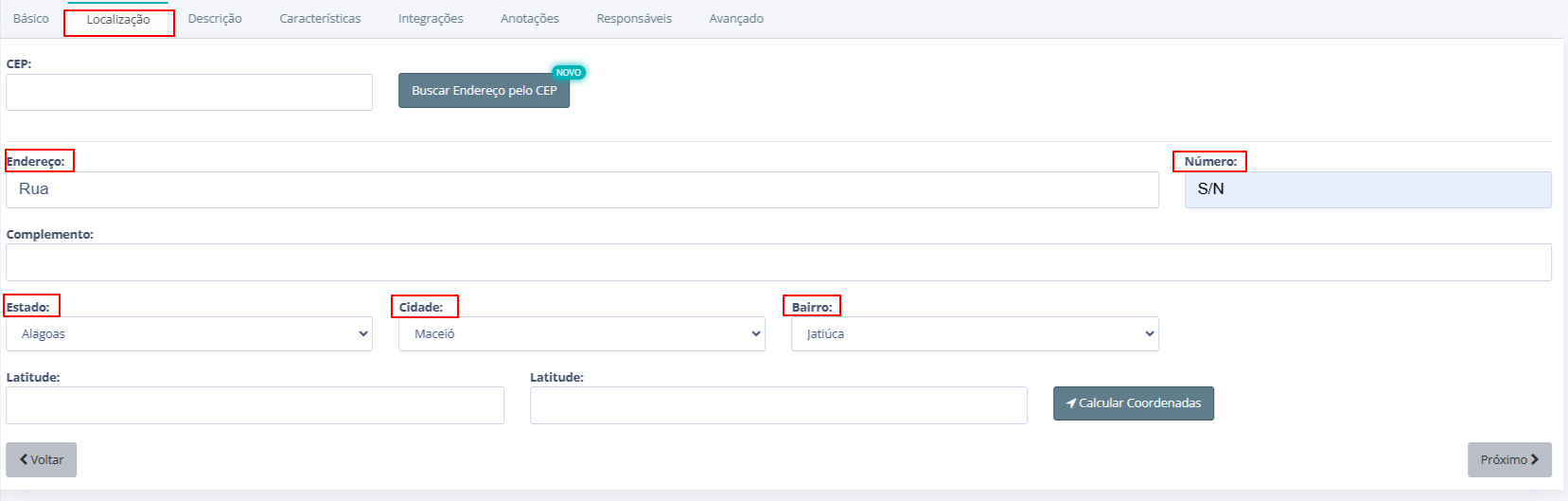 2. Aba “Localização” – Campos obrigatórios: